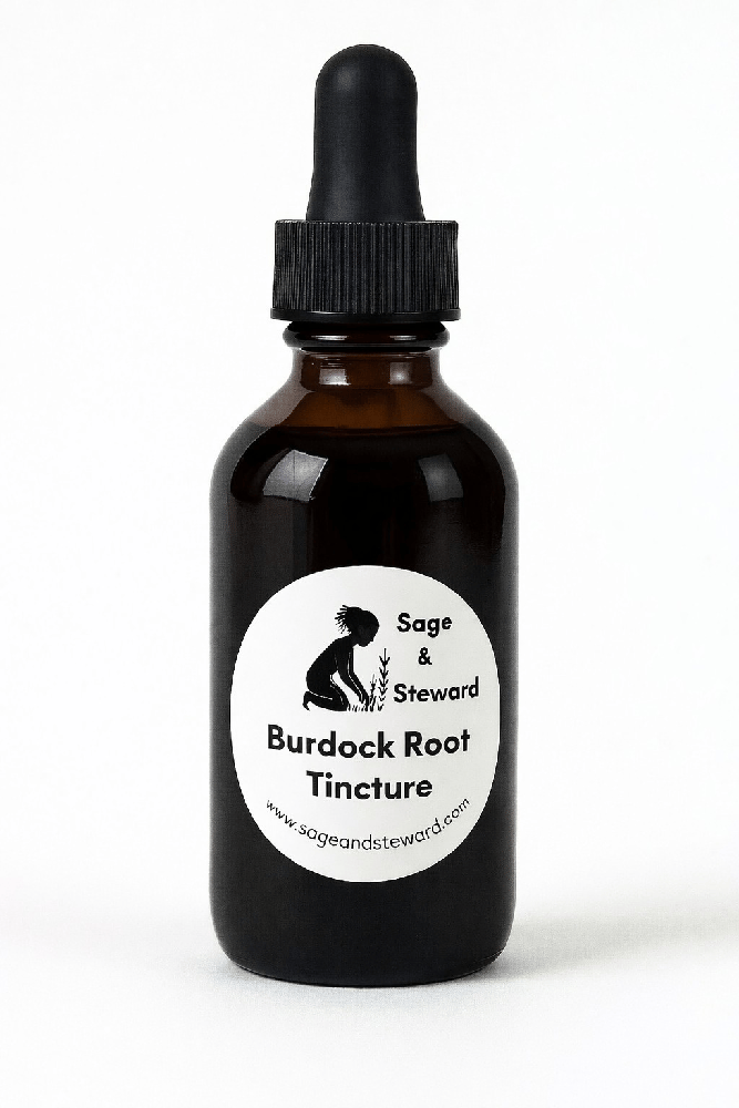 Our Burdock Root Tincture is a plant-forward botanical extract crafted with care using locally grown burdock root. Burdock has a long history of traditional use in herbal practices, where the root was incorporated into cleansing rituals and seasonal traditions centered on renewal and balance.